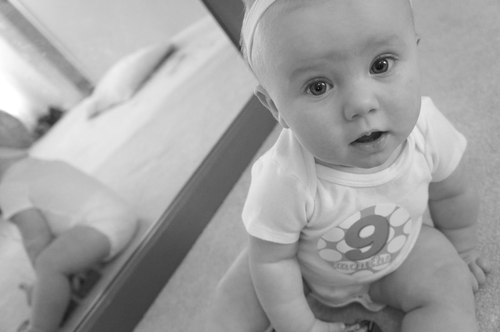 The most important milestone is...we are SLEEPING THROUGH THE NIGHT!! Yes, that fully deserves all caps. It only took 9 months. Nine. I still wake up several times and check on her, but having a full nights sleep...it took me awhile to remember what that was. She's gotten on quite a beautiful schedule of going down about 7-7:30pm and waking up between 7-7:30am. About 5am she wakes up and I nurse her and she'll sleep for a couple more hours. I'm praying this sticks around. I'm guessing she likes her bedroom of a closet. I guess we could have bought a smaller house.